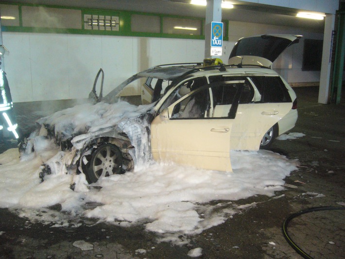 Am Freitagabend kam es gegen 23.12 Uhr in Debstedt zu dem Brand eines Taxis. Das Taxi war auf dem Parkplatz vor der Discothek Fiesta abgestellt. Auf Grund eines technischen Defekts an dem Mercedes geriet der Motorraum in Brand. Der Pkw brannte komplett aus. Der Pkw befand sich direkt neben einem Gebäudekomplex. Durch das Feuer wurde die Außenfassade leicht beschädigt.
