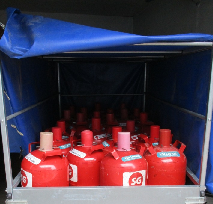 Gegen 3.40 Uhr war die Streifenbesatzung im Alten Kirchweg auf einen roten BMW und einen schwarzen Audi mit Anhänger aufmerksam geworden. Die Polizisten wendeten und konnten den Audi im Leischweg stoppen. Beim Blick in den Anhänger fielen den Beamten zahlreiche Propangasflaschen ins Auge. Einen Eigentumsnachweis konnte der 29-jährige Fahrer dafür nicht vorlegen. Er verwickelte sich in Widersprüche und schnell ergab sich der Verdacht, dass es sich um mögliches Diebesgut handelt. Die Beamten beschlagnahmten den Anhänger und die Ladung. Im Rahmen der weiteren Fahndung stieß die Polizei in der Nähe auf den roten BMW, der zuvor mit dem Audi aufgefallen war. Fahrer und Beifahrer hatten jedoch das Weite gesucht. Im Fahrzeug entdeckten die Beamten weitere Gasflaschen. Die Polizei geht davon aus, dass alle Flaschen aus einem Diebstahl stammen. Es handelt sich um über dreißig rote 11-KG-Propangasflaschen mit dem Aufdruck "SG". Die Ermittler vermuten einen Tatort im norddeutschen Raum. Sachdienliche Hinweise bitte an die Polizei Bremervörde unter Telefon 04761/99450.