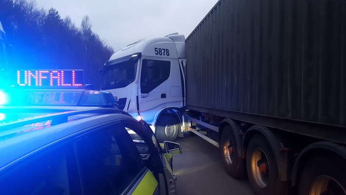 beschädigt wurde und sich der Sattelzug quer stellte. Die gesamte